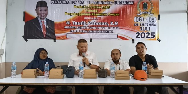 “Pembahasan Raperda “Sapu Jagat” ini direncanakan mungkin memakan waktu sekitar dua bulan, melibatkan masukan dari Kementerian Pertanian demi hasil maksimal. Namun, inti dari aturan baru ini tak sekadar di atas kertas, “ katanya kepada para jurnaslis sebagai peserta sosperd, di cape Selayang Pandang, Sabtu (11/7/25), Handil Bakti Batola.
