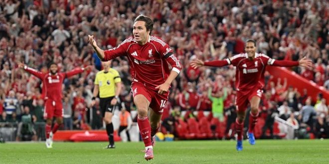 Liverpool, Mediaprospek.com – Laga pembuka Liga Inggris 2025/2026 dimenangkan Liverpool 4-2 atas Bournemouth, di Anfield, Sabtu (16/8/2025) dini hari WIB.