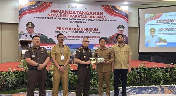Banjarmasin, mediaprospek.com – Pemerintah Kota Banjarmasin dan Kejaksaan Negeri (Kejari) Banjarmasin menandatangani Nota Kesepahaman Bersama (MoU) keberlanjutan program Penyuluhan Hukum dan Pencegahan Tindak Pidana Korupsi di hotel Rattan Inn Hotel Banjarmasin pada Senin, (13/10/2025).