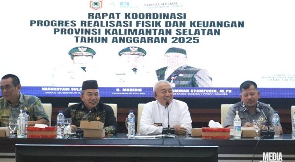Banjarbaru, mediaprospek.com – Gubernur Kalimantan Selatan, H. Muhidin, memimpin Rapat Koordinasi Progres Realisasi Fisik dan Keuangan Tahun Anggaran 2025 di Ruang Rapat Aberani Sulaiman, Sekretariat Daerah Provinsi Kalimantan Selatan Banjarbaru, Jumat (21/11/2025).