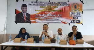 Barito Kuala, mediaprospek.com – Anggota Komisi II DPRD Provinsi Kalimantan Selatan, H. Taufik Rahman, S.H., menggelar sosialisasi Program Pembentukan Peraturan Daerah (Propem Perda) dan Peraturan Daerah (Perda) Perda No. 2 Tahun 2020 tentang Penyelenggaraan Keamanan Pangan, Sabtu (12/7/25) sore di cape Selayang Pandang, Handil Bakti, Kab.Barito Kuala (Batola). H. Taufik …